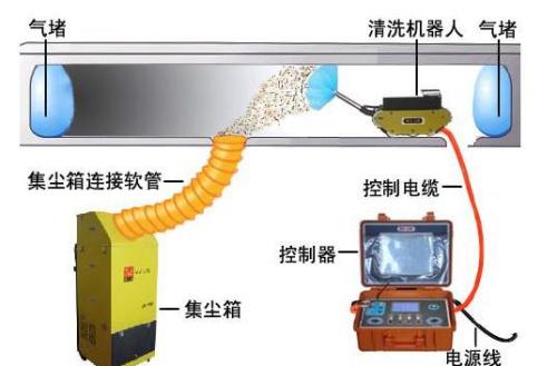 5.要一機多能;能清運管道內(nèi)的塊狀垃圾、可以裝配軟軸毛刷/氣鞭/氣刀類清洗頭進行聯(lián)合清掃(裝配氣鞭、氣刀專門清掃消聲孔板部位)可以完成大型管道內(nèi)的噴霧消毒工作等等。